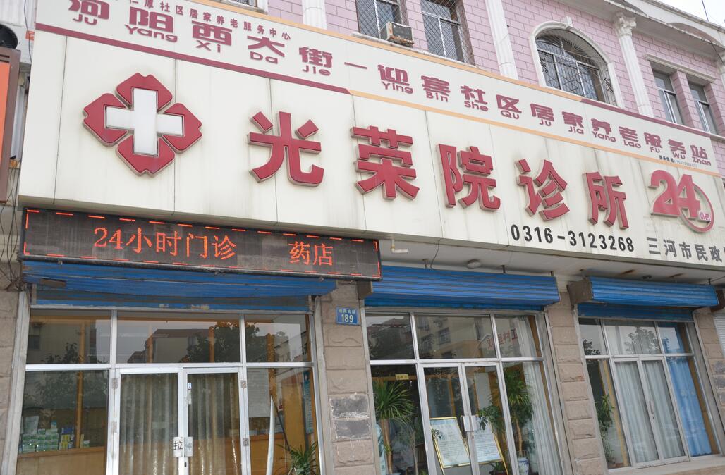 三河市民政局光荣院门诊所创建于2003年,位于三河市迎宾路第四小学对面,建筑面积492平方米。