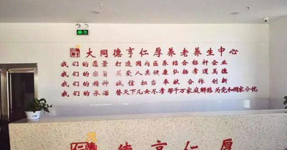 大同市德亨仁厚养老养生中心(大同市光荣院二期),位于山西省大同市御东新区文盛街,拥有350张床位,设有公共活动娱乐大厅、餐厅、医务室、户外花园、室内健身房、台球桌、乒乓球室;内有独立卫生间、厨房、冰箱、洗衣机、电视机、办公桌椅、24小时热水,床头呼叫系统。