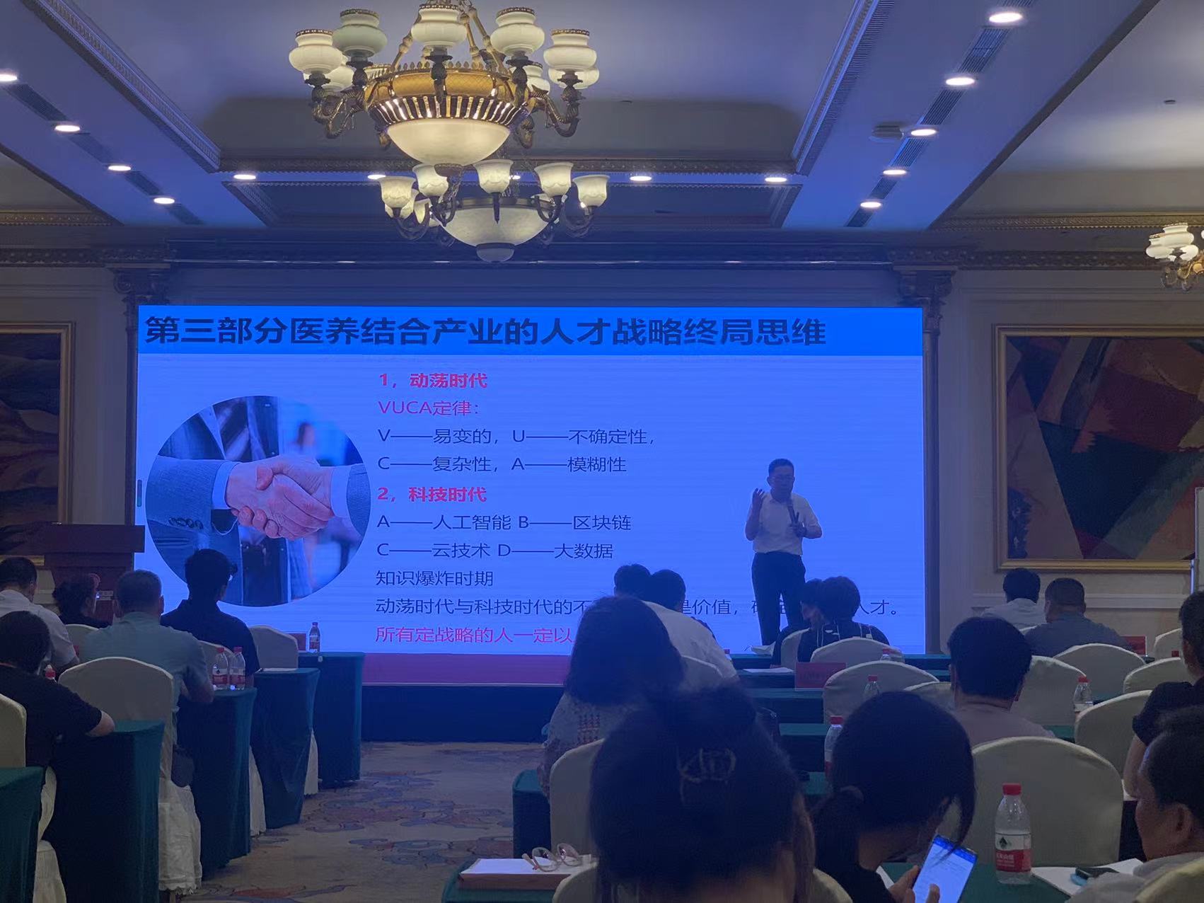 上午由德亨仁厚集团董事长王国权对本次课程授课《新时代下医养产业的新思考》