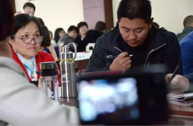 ▲ 老师融入到学员的中间,认真聆听大家的讨论