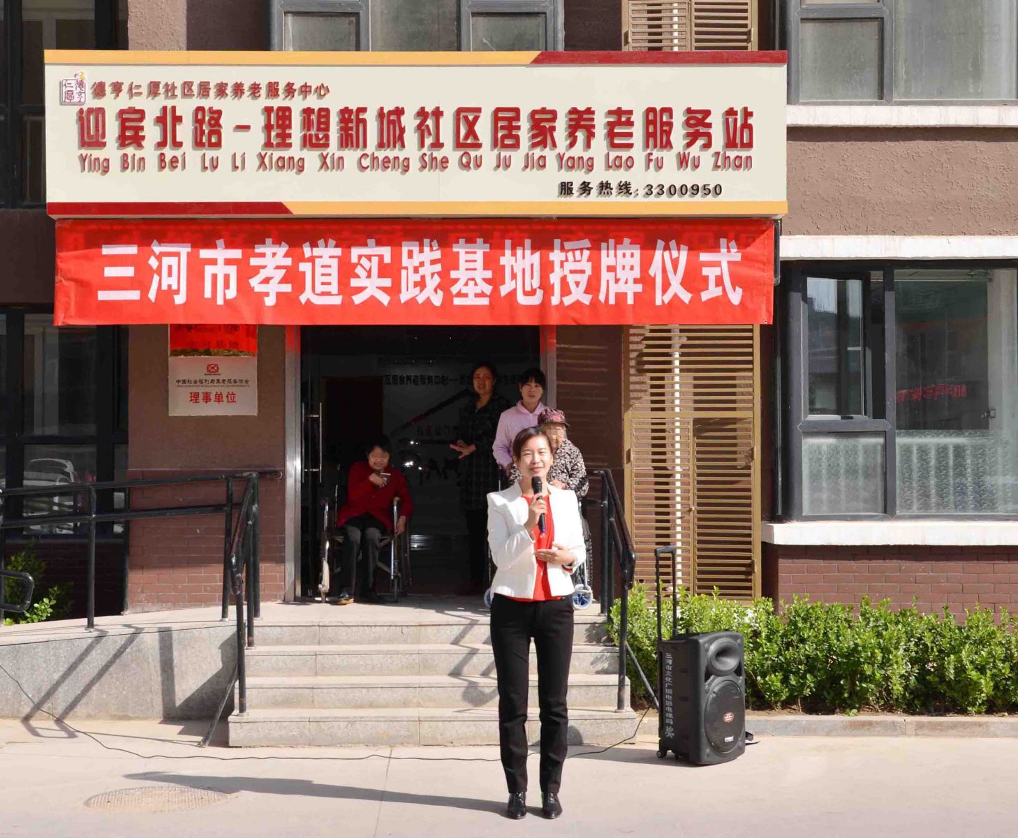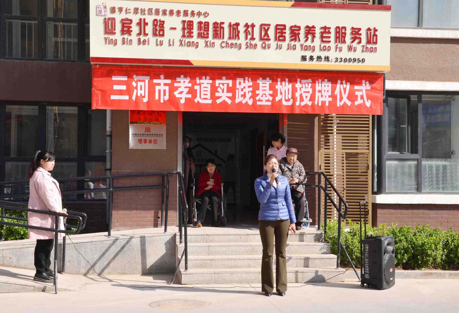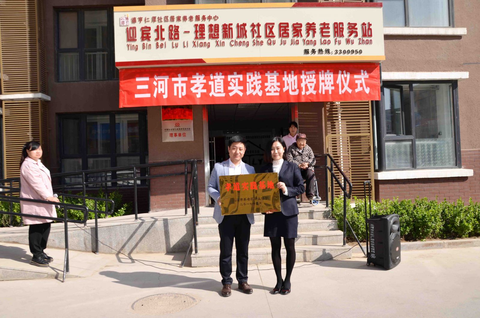 随后,三河市养老服务业协会秘书长王国翠对德亨仁厚社区居家养老服务中心进行授牌,她说:“我们坚信“孝道实践基地”这块牌匾将更好地让我们继承和发扬中华传统美德”。
