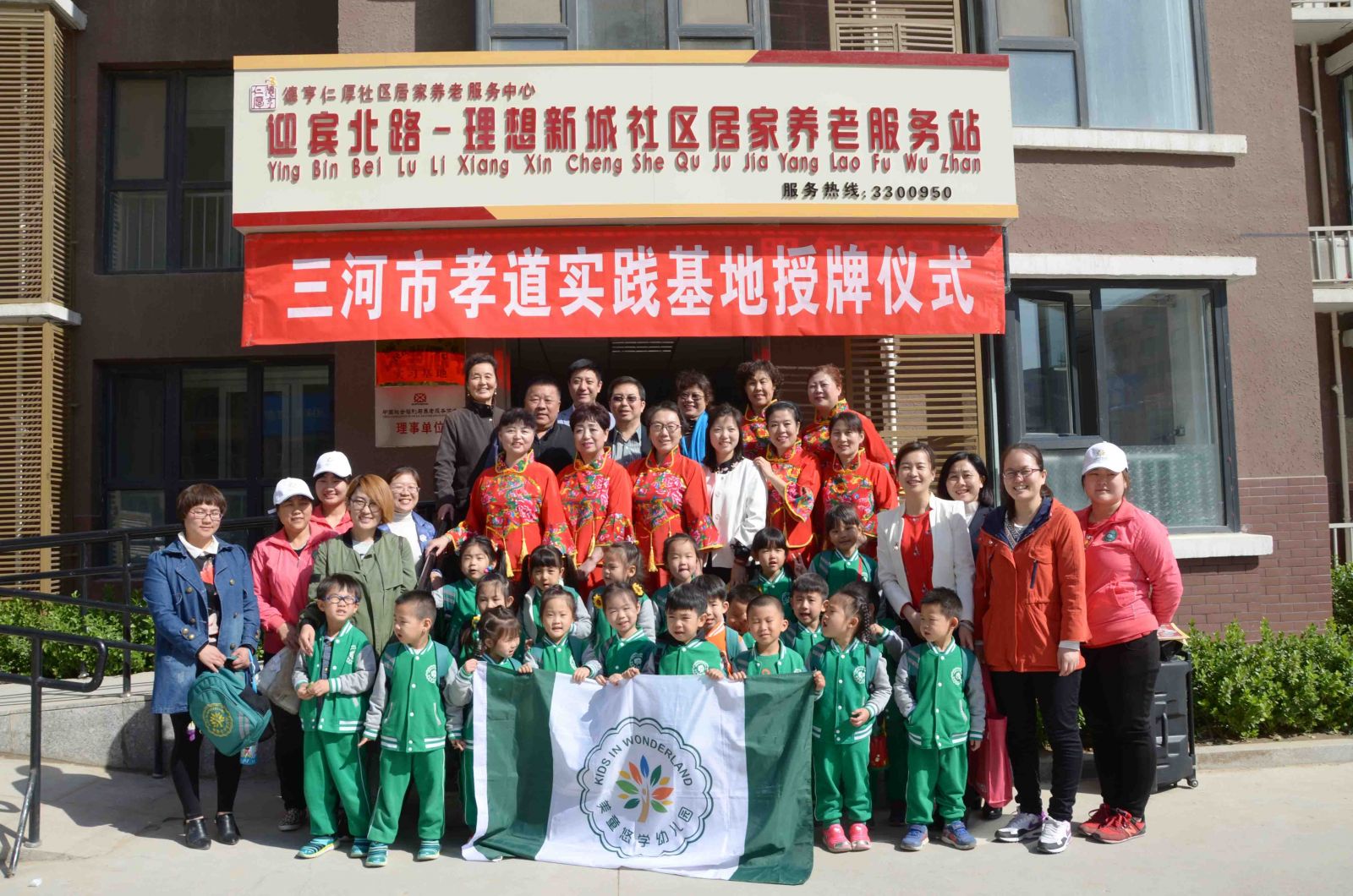 春风和煦,阳光明媚,2017年4月12日上午,德亨仁厚社区居家养老服务中心“孝道实践基地”授牌仪式正式举行,随后,燕郊美童悠学幼儿园作为“孝道实践基地”第一批弘扬孝道美德的客人,对社区居家服务中心的老人们进行了爱心慰问,各界爱心人士齐聚一堂,为老人们送上了春天的问候。