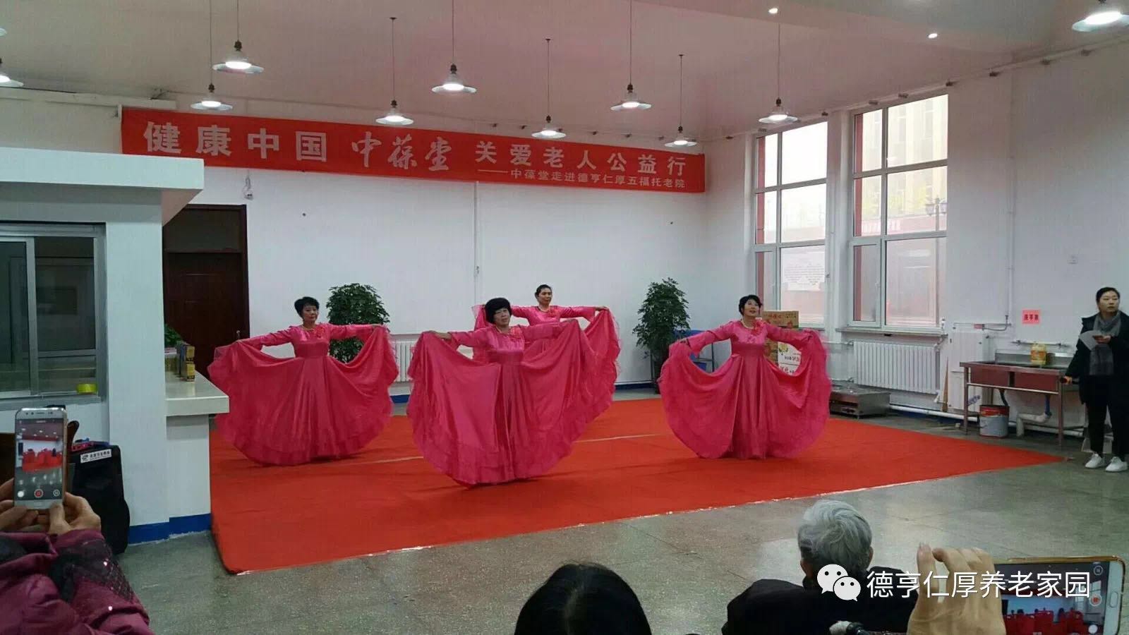 演出现场,爱心人士们忙碌的身影、老人们的欢声笑语、小朋友欢快的尖叫声汇聚成欢乐的海洋。只见,少儿扇子舞、朝鲜长鼓舞、单人演唱、广场舞等轮番上演,节目精彩纷呈,老人们看得目不转睛。最引人注目的要属医养院里的爷爷奶奶们了,别看他们年事已高,照样把整场气氛带动起来。自编自改的歌词、中气十足的声音,赢得了现场阵阵掌声。最后的压轴节目《大伙儿的歌大伙儿唱》可谓是精彩十足,现场所有的大朋友小朋友都客串了一回舞蹈演员,手拿彩扇和手绢,扭着秧歌儿粉墨登场,和气融融。
