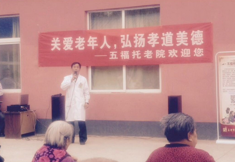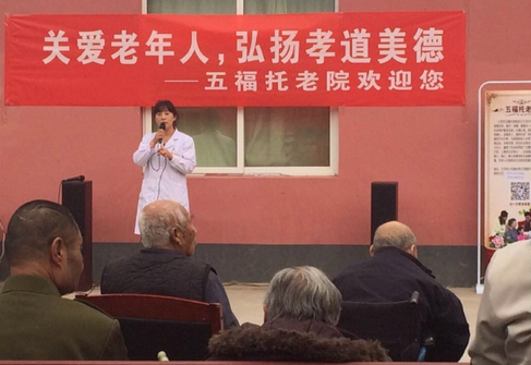 “根根白发见证了岁月的痕迹,条条皱纹书写着岁月的沧桑,母亲,一个伟大的代名词,五福托老院内的老人们无怨无悔的奉献了自己的一生,迈进了养老院的大门,他们更渴望的是亲情,厚德敬老夕阳红队的到来,为老人们送来了温情,送来了祝福,也送来了欢声笑语,希望关爱之心不散,关心之情常驻”三河市五福托老院院长李红梅动情的说道。煤矿医院院长秦晓军表示,三河市五福托老院坐落于煤矿医院院内,保证老人们身体健康的重担自然落在了我们身上,我相信,在我们精湛的医术下,在我们的精心呵护下,一定能做好保障老人身体健康的医疗工作,为所有老人打造一个健康无忧的明天!秦院长的讲话赢得了大家经久不息的掌声。
