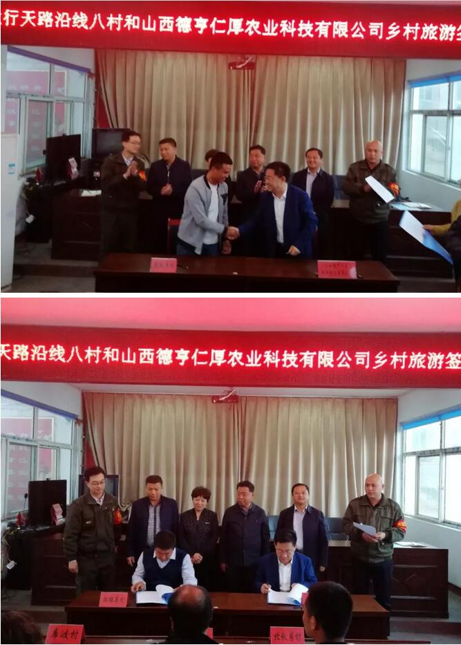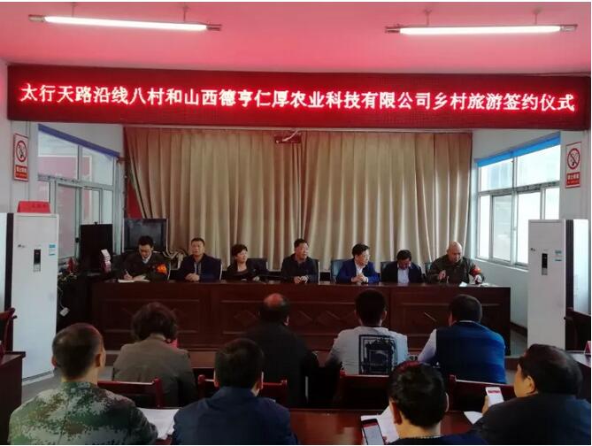2018年5月3日,山西德亨仁厚农业科技有限公司与太行天路沿线八村的乡村旅游签约仪式在大家的期待中,圆满落下帷幕。此次的乡村旅游签约具有划时代的战略性合作意义,得到各界的高度重视和认可,现场宾朋满座,共同见证了这个伟大的时刻。