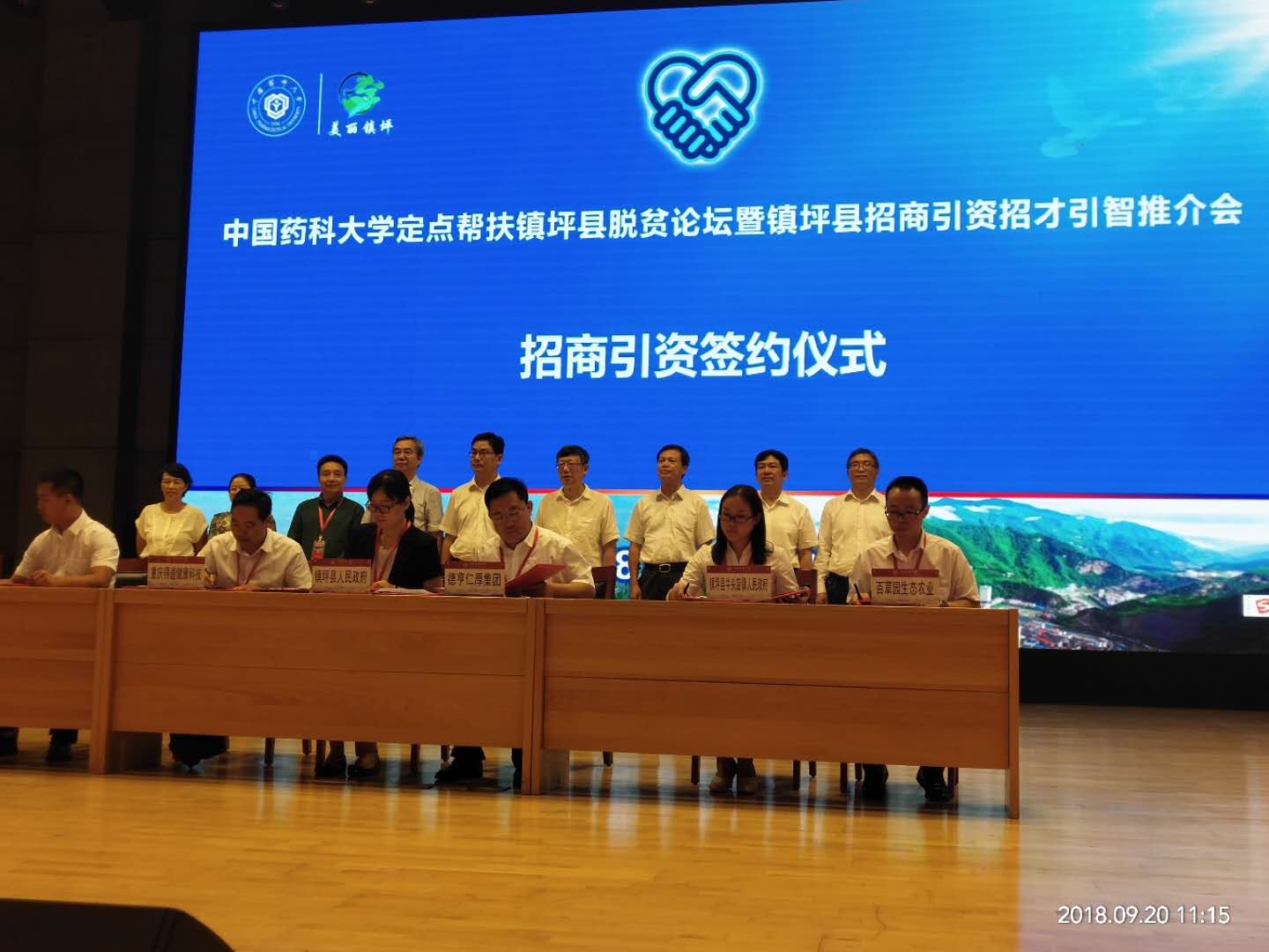 2018年9月20日,中国药科大学定点帮扶陕西省镇坪县脱贫论坛暨镇坪县招商引资招才引智推介会在南京举行,徳亨仁厚集团王国权董事长率项目组到场参加。